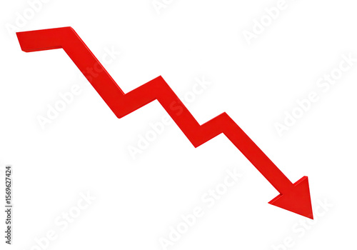 A red arrow pointing downwards, indicating a decline, isolated on transparent background