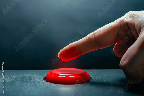 A red button is being pressed by a hand