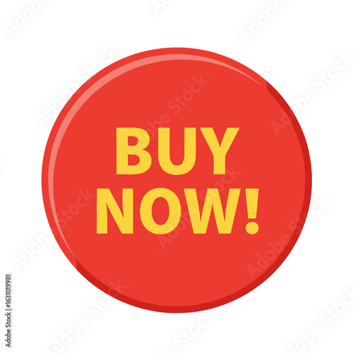 A red circular call-to-action button with the words "BUY NOW!" in bold yellow font, isolated on a white background.