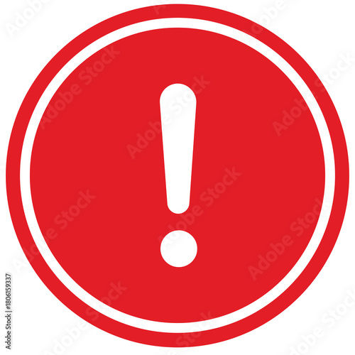 A red circular warning sign featuring a white exclamation mark in the center