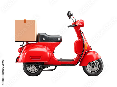 A Red delivery scooter with a box on the back isolated on a transparent background.