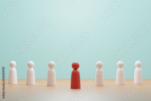a red figure stands in front of the crowd ,concept of business leadership for leader team, 3d rendering