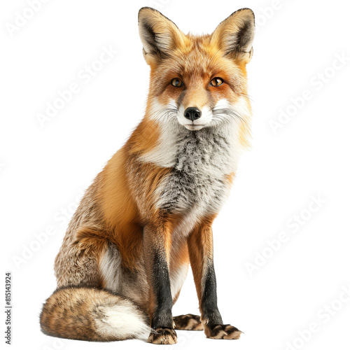 A red fox is seated in front of a Png background, a red fox isolated on transparent background