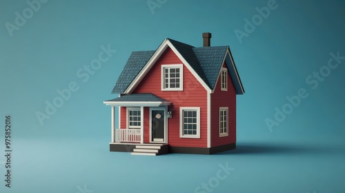 A red house with a blue roof sits on a blue background