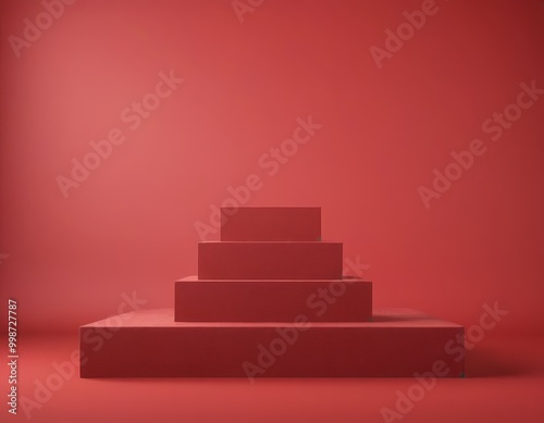 A red platform with a pyramid-like structure on top, set against a solid red background