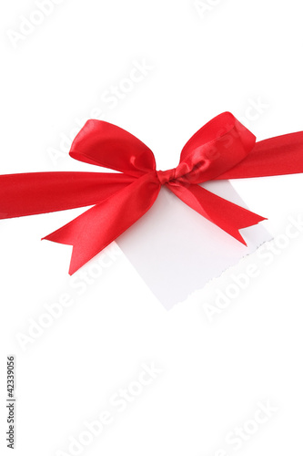 a red ribbon with a bow on white