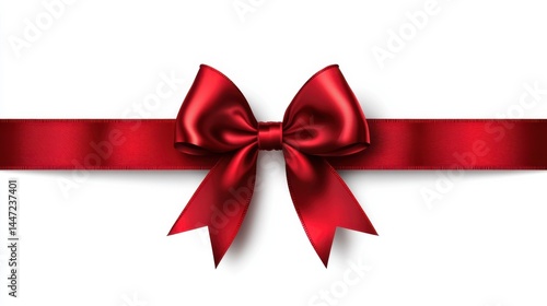A red satin ribbon tied in a bow on a white background.