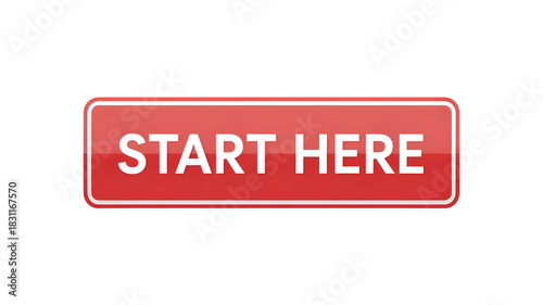 A red start here button with white text on a black background indicating a starting point or instruction