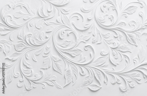 A refined white wall relief with detailed floral and scrolling leaf patterns. Great for sophisticated interior designs, architectural projects, or classic decor ideas.