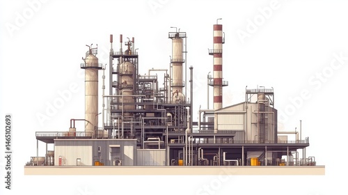 A refinery clipart, energy infrastructure element, flat design illustration, neutral tones, isolated on white background