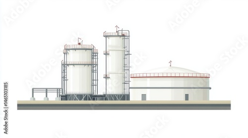 A refinery clipart, energy infrastructure element, flat design illustration, neutral tones, isolated on white background