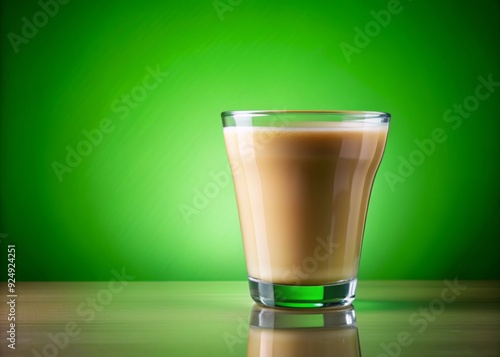 A refreshing glass of milk coffee, elegantly isolated on a vibrant green background, perfect for breakfast or brunch, with a clipping path for easy editing.