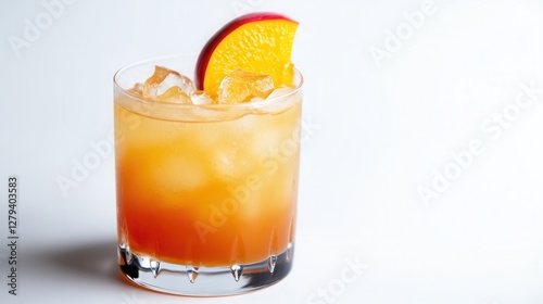 A refreshing glass of orange juice garnished with a vibrant slice of orange, showcasing a delightful beverage perfect for any occasion.
