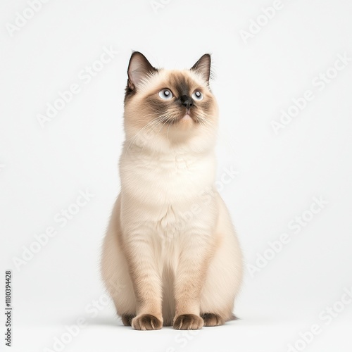 A regal Tonkinese cat with striking blue eyes sitting gracefully against a neutral backdrop, showcasing its beautiful coat and demeanor.