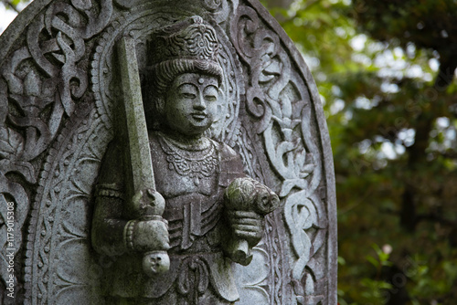A religious stone statue of Akasagarbha at Japanese buddhism temple