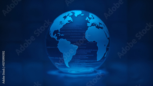 A Remarkable Glass Globe Showcasing Elegant Coding Scripts on a Deep Cobalt Blue Background Capturing Modern Technology
