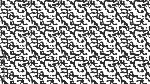 A repeating pattern of black abstract shapes on a white background creating a dense design