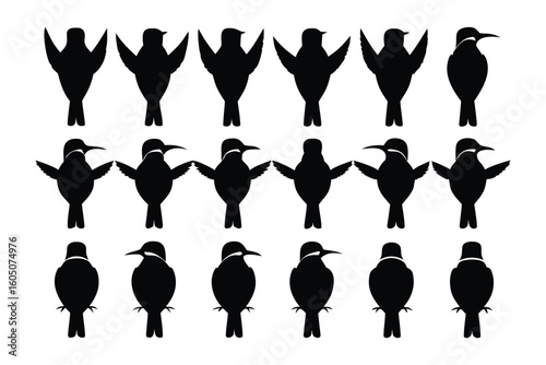 A repeating pattern of black silhouette herons standing on one leg against a white background