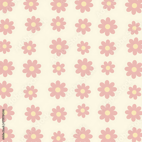 A repeating pattern of stylized pink and yellow daisies on a cream background.