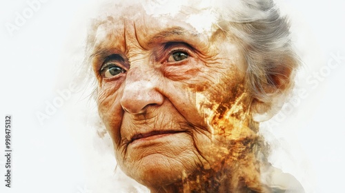 A representation of an elderly woman with dementia expressing loneliness and confusion in an abstract portrait