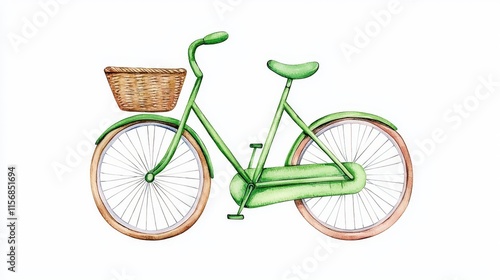 A retro green bike is displayed against a white background, emphasizing its unique design and traditional characteristics in a simple style.
