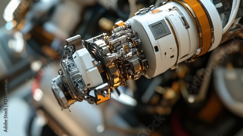 A robotic arm in a next gen space exploration facility, assembling advanced propulsion systems for Mars missions, Space-tech style