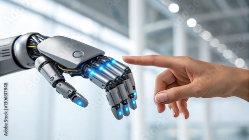 A robotic hand reaches out to a human hand, symbolizing the connection between humans and technology.