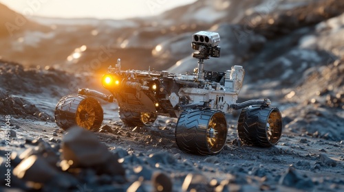 A robotic rover exploring Mars' surface, powered by advanced space exploration technology.