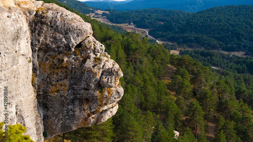 A rock jutting out of the forest