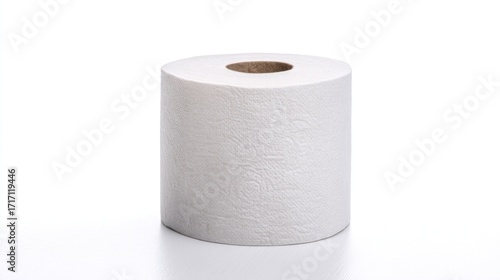 A roll of absorbent white toilet paper stands elegantly isolated on white