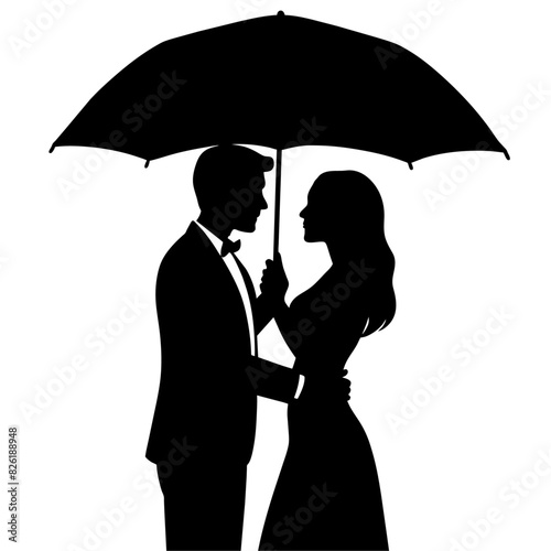 A Romantic couple holding umbrella vector silhouette, isolated white background