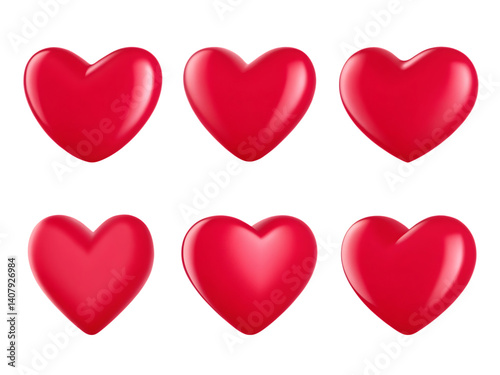 A romantic set of red hearts, vector symbols of love, isolated for Valentine's day decoration.