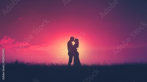 A romantic silhouette of a couple embracing at sunset, symbolizing love and connection.