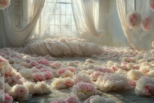 A Room Overflooded With White and Pink Decorative Flowers