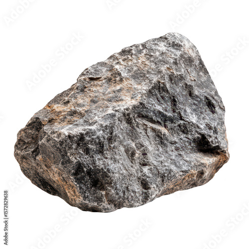 A rough textured grey and brown mineral rock with visible crystalline structure isolated on transparent background
