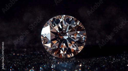 A round diamond with a perfect cut, high resolution, isolated on a black background, front view.