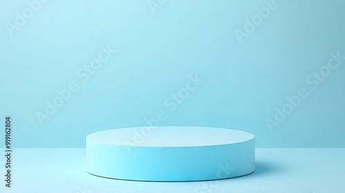 A round pedestal with a solid light blue background, ideal for clean and fresh product displays.