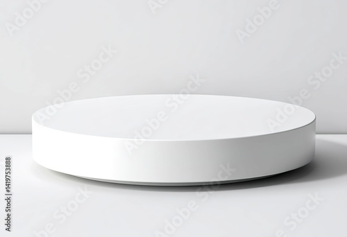 A round white pedestal with a flat surface for product presentation, isolated on a white