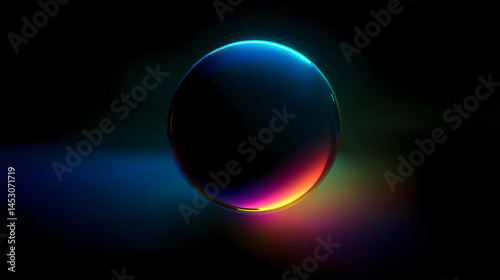 A rounded holographic slope sphere button, glow with vivid colors, perfect for a modern interface.