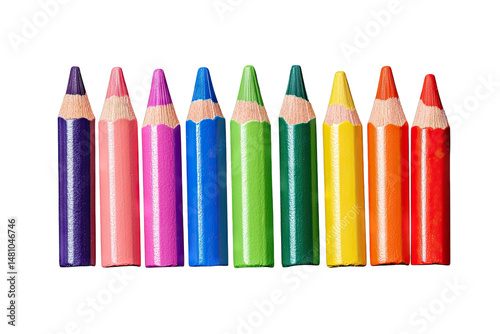 A Row Of Ten Sharpened Colored Pencils On A Transparent Background The Pencils Are Arranged In A Rainbow Order From Purple To Red