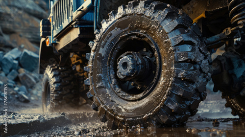 A rugged rear differential, with thick gears and sturdy housings, transferring power to the truck's rear wheels