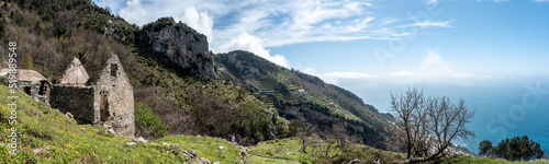 A ruined house at the famous path of the Gods at the Amalfi coast, Southern Italy