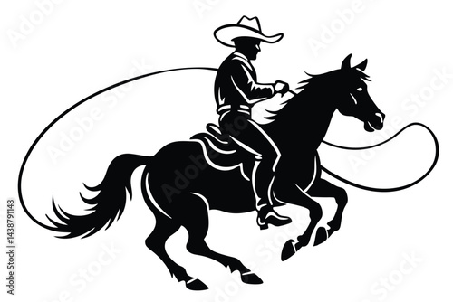 A running horse with cowboy and lasso silhouette vector, Cowboy with lasso in his hand on galloping horse vector symbol.