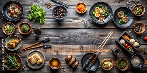 A rustic black wooden table background with gray undertones, offering a warm and homey feel.