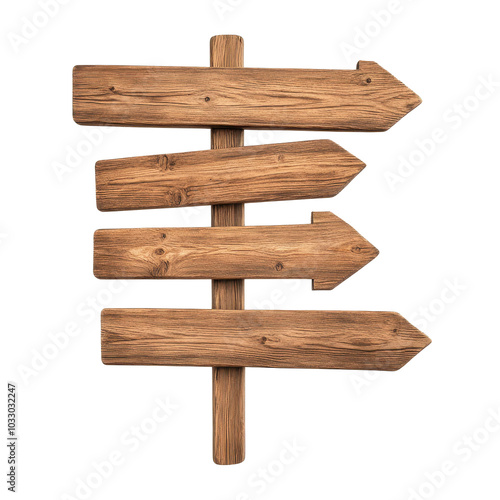 A rustic brown wooden sign stands alone against a white background, perfect for guiding the way with charm.