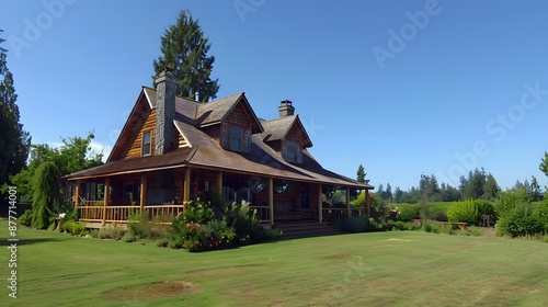 A Rustic Log Cabin Home with Expansive Lawn
