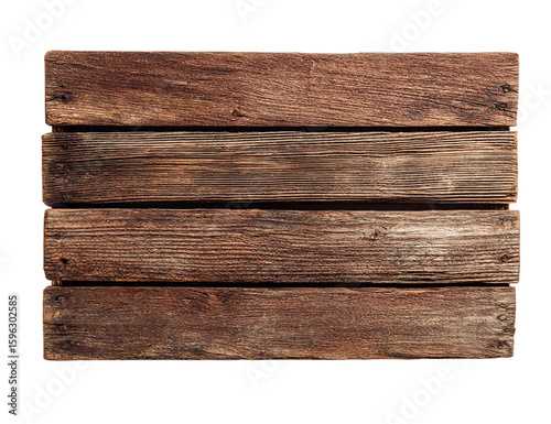 A rustic wooden plank background isolated on transparent background features a weathered surface with a rich, brown texture and aged grain