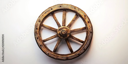 A rustic wooden wagon wheel on a white background, symbolizing the journey of life and exploration in your video animation project