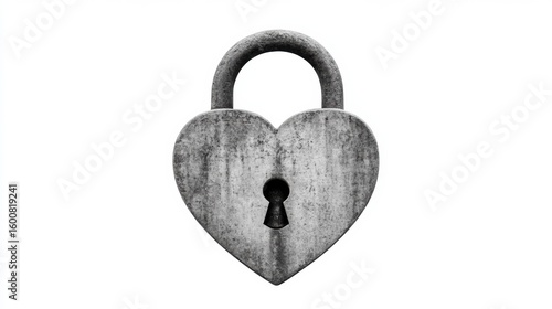 A rusty, metal padlock shaped like a heart with a keyhole in the center, symbolizing love and security.