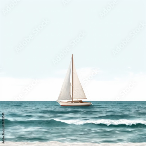 A sailboat is sailing in the ocean. The sky is clear and the water is calm. The boat is the only object in the scene, giving the impression of solitude and peacefulness